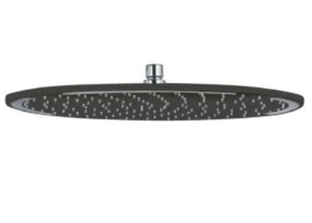 Hlavová sprcha, 1jet povrchová úprava černý mat a chrom provedení kov/plast talířová hlavová sprcha DN 15 průměr 400 mm 1 druh proudu spotřeba vody horní sprchy neboli průtok průtok 23 l/min vody při tlaku 3 bary Rychlé čištění vápenatých usazenin na silikonových tryskách kulový kloub pro natáčení přípojka G 1/2 bez sprchového ramena