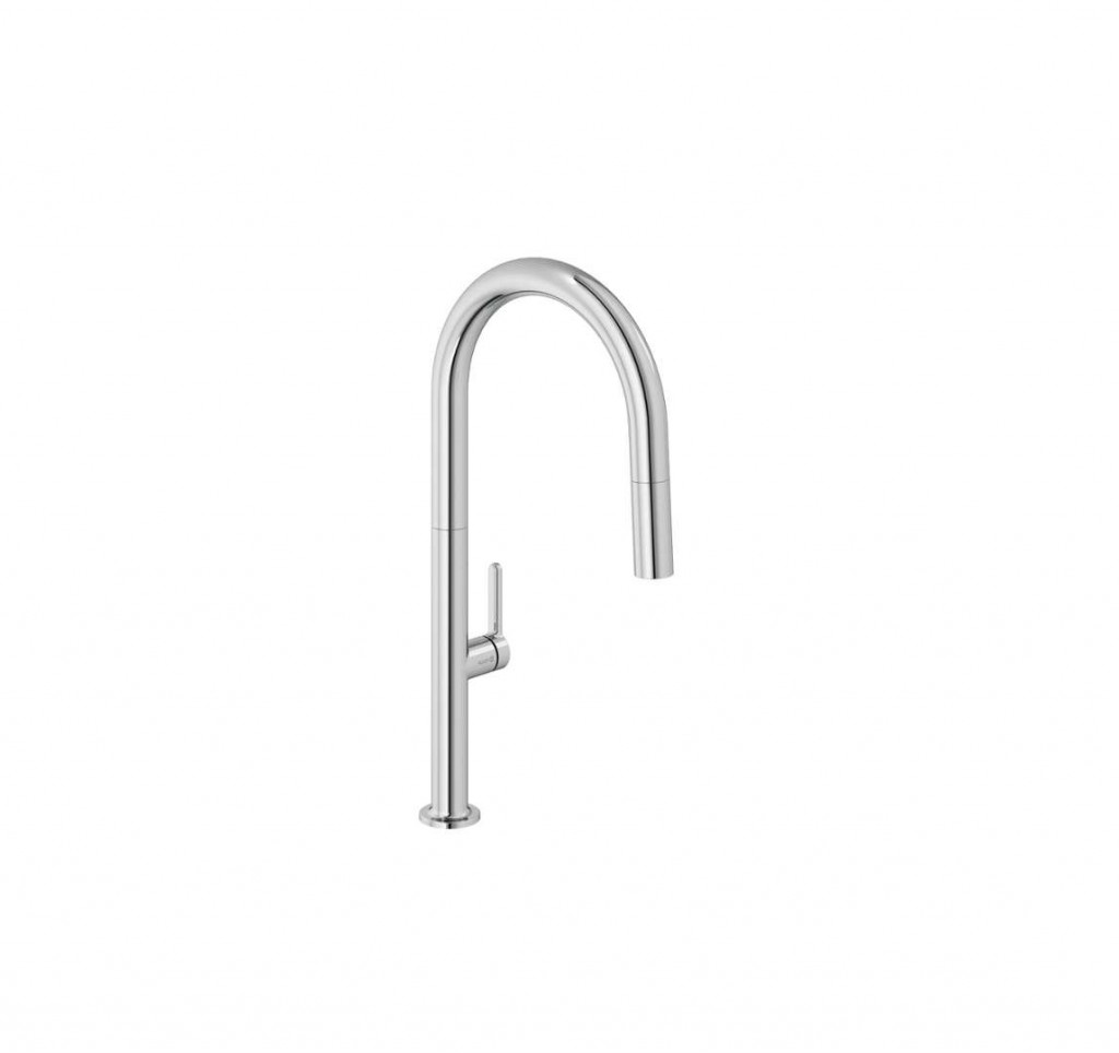Páková kuchyňská baterie materiál chrom délka výtoku 220 mm výška 425 mm komfortní zóna 240 mm stojánková montáž pákové boční ovládání otočné rameno (360°) s výsuvnou sprškou (hadice 250 mm) automatický přepínač sprcha/proud keramická kartuše perlátor M 16,5 x 1 připojení G 3/8''