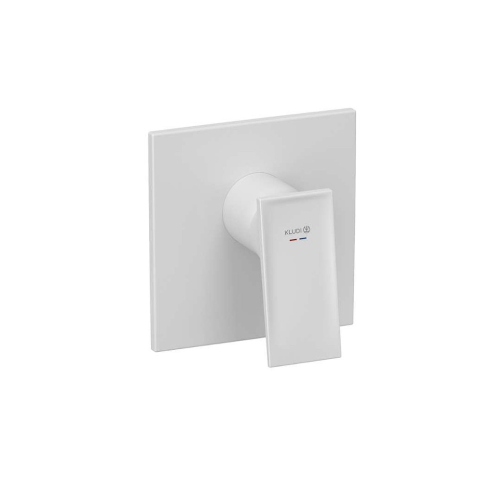 Páková sprchová baterie Decus barva matná bílá podomítková montáž rozměr krycí desky 150 x 150 mm pákové ovládání keramická kartuše s možností omezení max. teploty vody průtok 28 l/min při 3 bar pro těleso 88022 Montážní těleso není součástí dodávky.