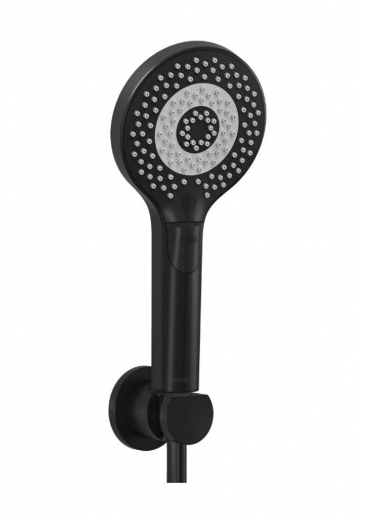 Sprchová souprava Obsahuje: ruční sprchu Dive X 3S barva: matná černá průměr hlavice: 117 mm 3 proudy: Body, Hair, Skin Body: jemný a zároveň široký relaxační proud Hair: koncentrovaný a silný proud pro mytí vlasů Skin: soustředěný masážní proud, který revitalizuje pokožku a stimuluje krevní oběh snadné a rychlé čištění vápenatých usazenin průtok: 15 l/min (při tlaku 3 bar) sítko na zachycení nečistot sprchovou hadici s kónickými maticemi délka: 1250 mm připojení: 2x G1/2 plastová ochranná povrchová vrstva sprchový držák sprchový nástěnný držák pro pevnou montáž na stěnu průměr kruhové krycí rozety: 58 mm Ilustrační foto