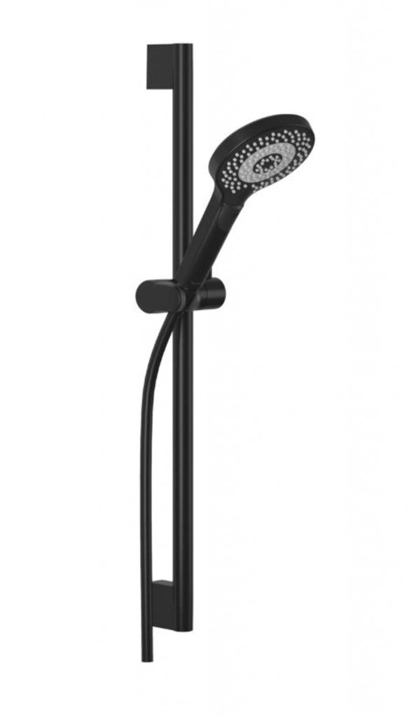 Sprchová souprava Obsahuje: ruční sprchu Dive X 3S barva: matná černá 3 proudy: Body / Hair / Skin Body: široký relaxační sprchový proud Hair: koncentrovaný a silný proud pro mytí vlasů Skin: soustředěný masážní proud, který revitalizuje pokožku a stimuluje krevní oběh snadné a rychlé čištění vápenatých usazenin průtok: 15 l/min (při tlaku 3 bar) sítko na zachycení nečistot sprchovou hadici barva: matná černá s Anti Twist systémem proti kroucení délka: 1600 mm připojení: 2x G1/2 sprchovou tyč s držákem barva: matná černá rozteč uchycení: 620 mm držák na tyč Ilustrační foto