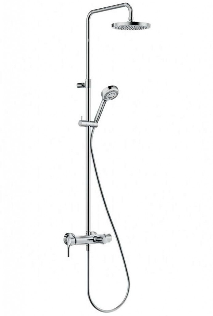 Sprchový set Logo Dual Shower System nástěnná montáž s otočným a výškově nastavitelným ramenem horizontálně a vertikálně nastavitelný jezdec keramická kartuše s možností omezení maximální teploty vody dolní sprchový vývod G 1/2 otočný ventil 120° nastavitelný pro nastavení ruční a hlavové sprchy horní sprchový vývod zabezpečeno proti zpětnému nasátí vody hadice SUPARAFLEX SILVER, G 1/2 x G 1/2 x 1600 mm s A-QA talířovou hlavovou sprchou Ø 200 mm s ruční sprchou, 3 proudy s upevňovacím materiálem povrchová úprava chrom