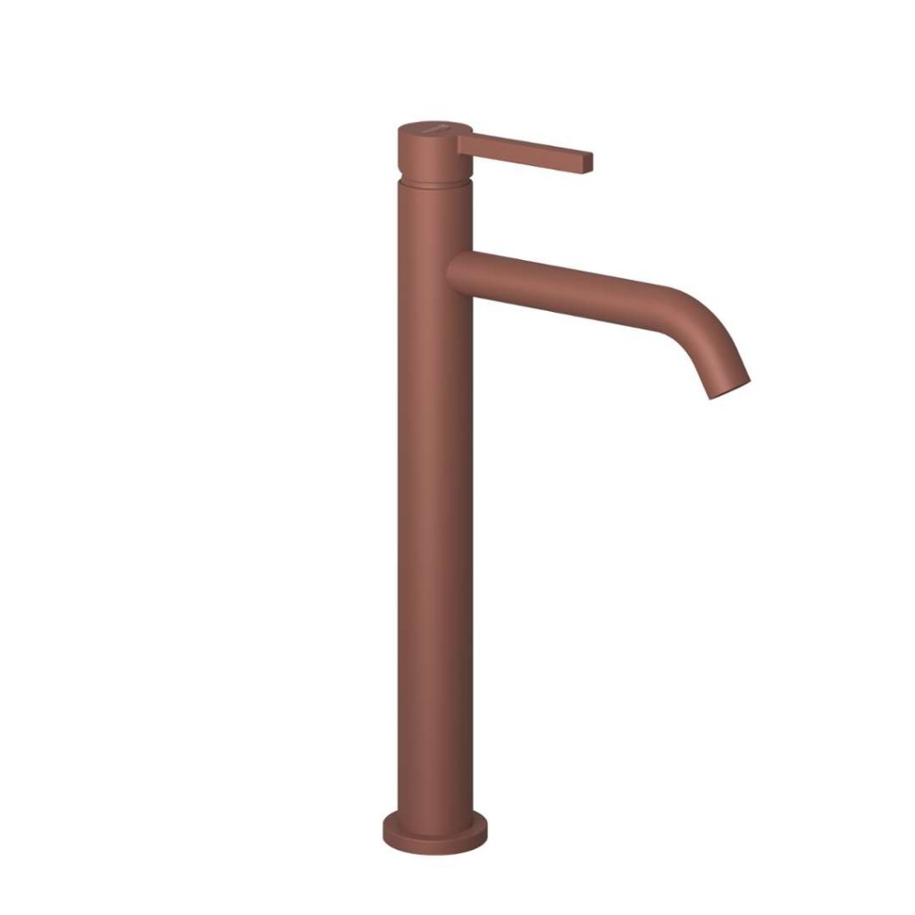 Stojánková umyvadlová baterie, bez výpusti barva matná cihlová materiál kov délka výtoku 170 mm výška baterie 335 mm komfortní zóna 240 mm keramická kartuše s možností omezení max. teploty vody pákové ovládání jednootvorová stojánková montáž vestavěný skrytý s-pointer perlátor průtok 4,5 l/min při 3 bar připojení G 3/8" bez výpusti