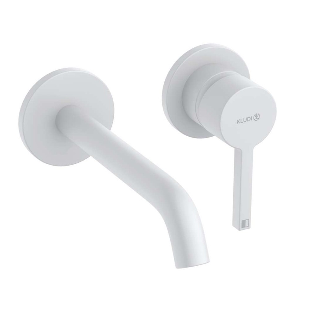 Podomítková umyvadlová baterie, bez tělesa barva matná bílá délka výtoku 180 mm pákové ovládání pevný výtok podomítková 2otvorová montáž průtok 4,5 l/min při 3 bar vestavěný skrytý s-pointer perlátor pro těleso 38242 Design označení teplé a studené vody se může lišit