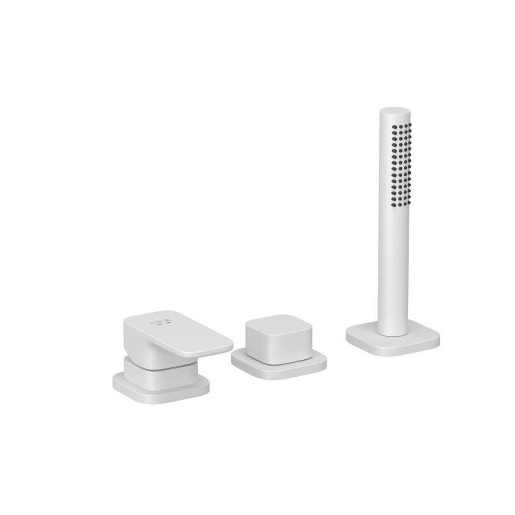 Páková 3-otvorová vanová baterie barva matná bílá pákové ovládání 3-otvorová stojánková montáž keramická kartuše s možností omezení max. teploty vody automatický přepínač sprcha/vana zabezpečeno proti zpětnému nasátí vody vytažitelná ruční sprcha - 1 proud sprchová hadice 1500 mm bez vanového výtoku průtok vana 23 l/min při 3 bar průtok sprcha 13 l/min při 3 bar bez flexibilních přívodních trubek 7544605-00