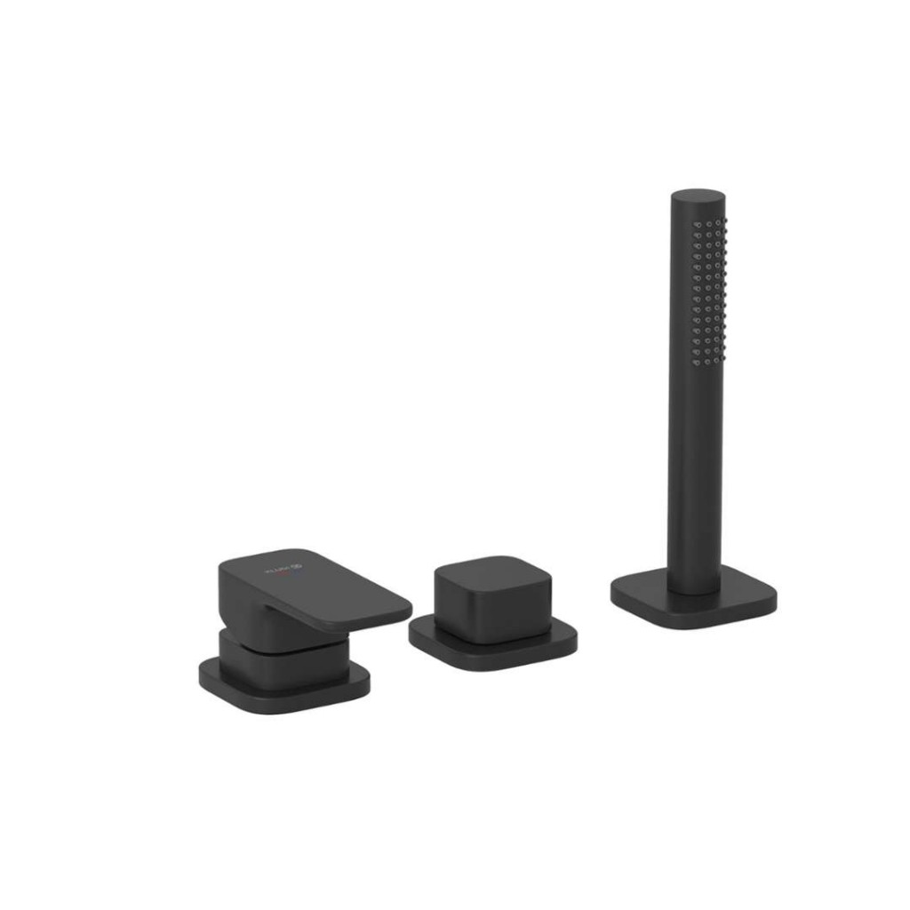 Páková 3-otvorová vanová baterie barva matná černá pákové ovládání 3-otvorová stojánková montáž keramická kartuše s možností omezení max. teploty vody automatický přepínač sprcha/vana zabezpečeno proti zpětnému nasátí vody vytažitelná ruční sprcha - 1 proud sprchová hadice 1500 mm bez vanového výtoku průtok vana 23 l/min při 3 bar průtok sprcha 13 l/min při 3 bar bez flexibilních přívodních trubek 7544605-00