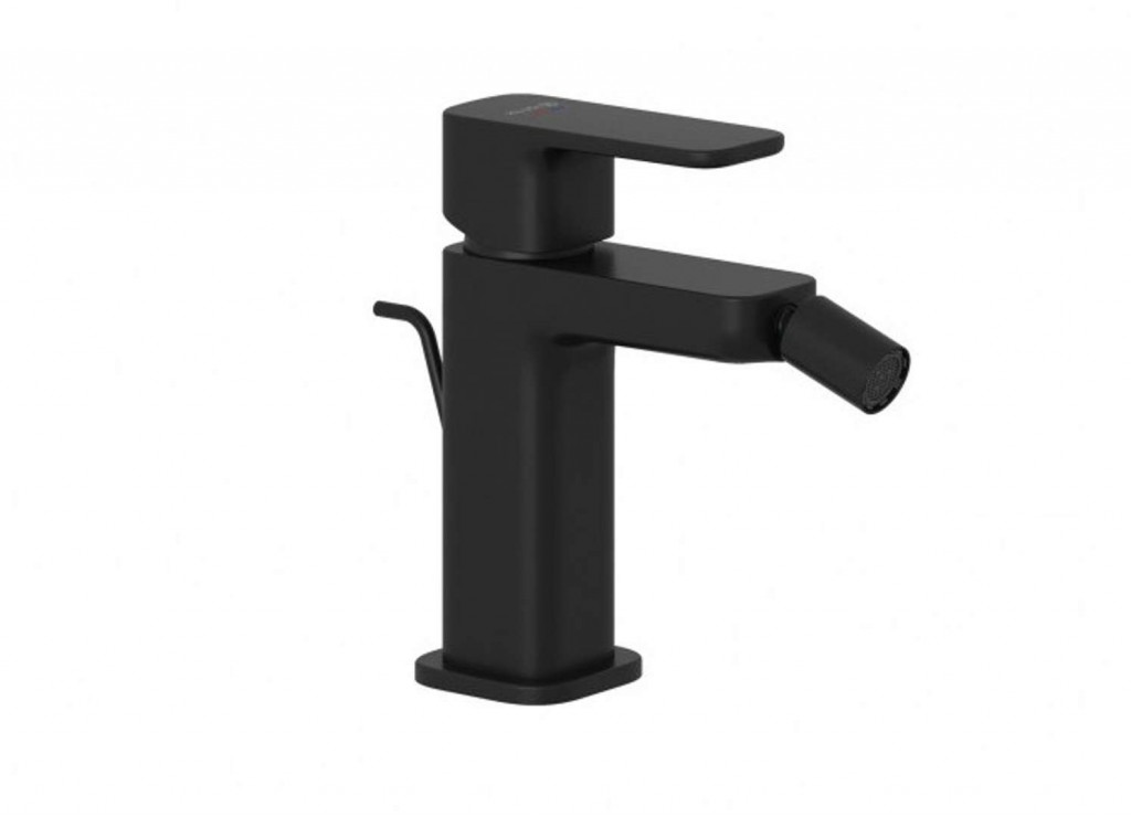 Stojánková bidetová baterie s výpustí barva matná černá výška baterie 145 mm délka výtoku 115 mm jednootvorová stojánková montáž průtok 5 l/min (při tlaku 3 bar) kulový kloub perlátor M 16 x 1 keramická kartuše s možností omezení maximální teploty vody flexibilní přípojky G 3/8" rychlomontážní systém odpadová souprava G 1 1/4