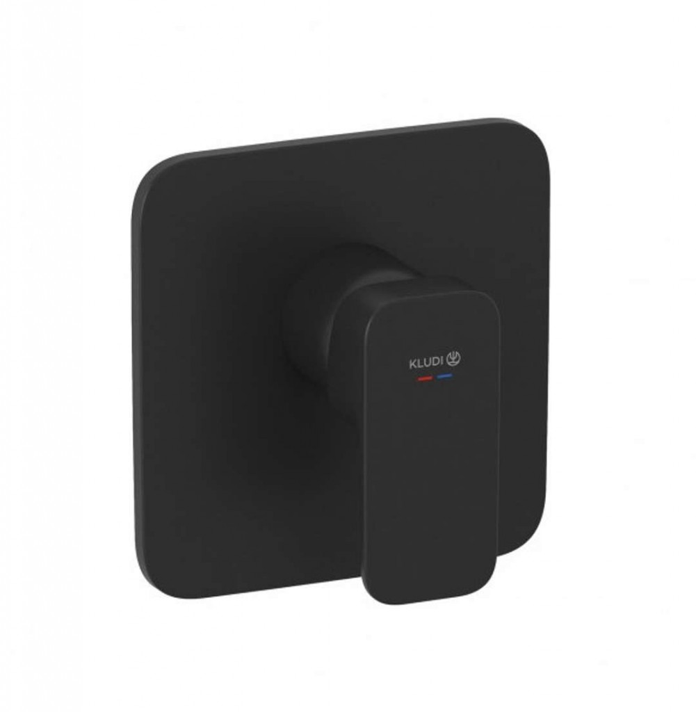 Páková sprchová baterie barva matná černá podomítková montáž rozměr krycí desky 150 x 150 mm pákové ovládání keramická kartuše s možností omezení maximální teploty vody průtok 28 l/min při tlaku 3 bar Instalace na montážní těleso, není součástí balení.