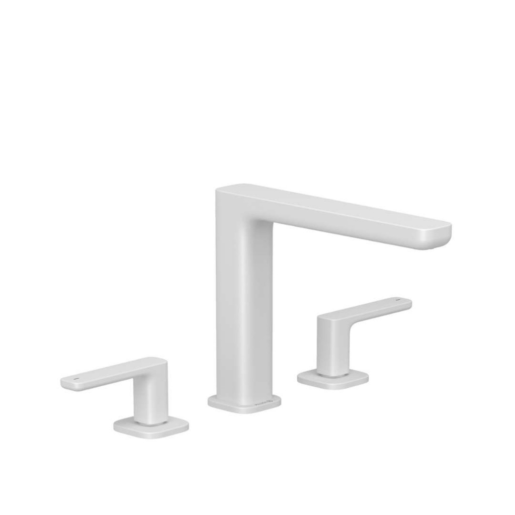 Stojánková umyvadlová baterie s výpustí barva matná bílá výška baterie 165 mm délka výtoku 180 mm komfortní zóna 150 mm 3-otvorová stojánková montáž průtok 4,5 l/min při tlaku 3 bar PCA perlátor M 18,5 keramický vršek 90° pevný výtok rychlomontážní systém s výpustí Push-Open