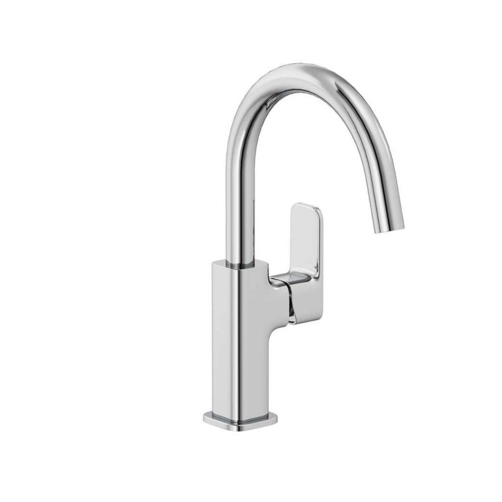 Stojánková umyvadlová baterie s výpustí barva chrom výška baterie 290 mm komfortní zóna 180 mm jednootvorová montáž pákové boční ovládání otočný výtok (360°) průtok 4,5 l/min při 3 bar PCA perlátor M 18,5 keramická kartuše s možností omezení max. teploty vody flexibilní tlakové hadice G 3/8" rychlomontážní systém s výpustí Push-Open G 1 1/4"