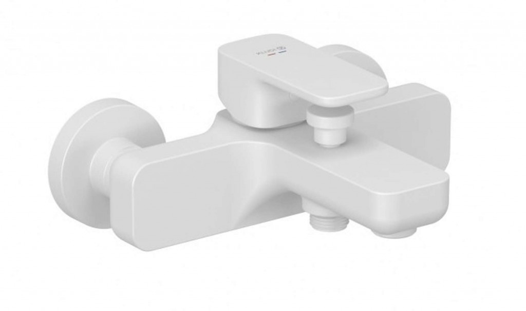 Páková vanová a sprchová baterie barva matná bílá nástěnná montáž šířka baterie 210 mm délka výtoku 185 mm rozteč 150 mm vanový průtok 20 l / min při tlaku 3 bar sprchový průtok 18 l/min při tlaku 3 bar perlátor M24x1 keramická kartuše s možností omezení maximální teploty vody zabezpečeno proti zpětnému nasátí vody automatický přepínač: sprcha/vana S-přípojky připojení G 1/2