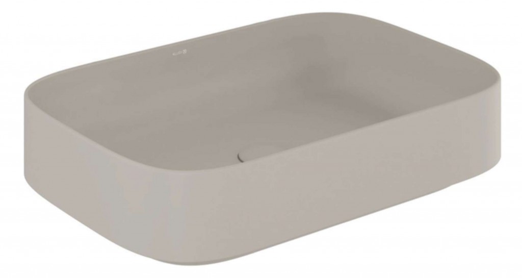 KLUDI-RESA S Umyvadlo na desku provedení matná písečně šedá rozměry 600 x 400 mm výška 140 mm tvar obdélníkový s oblými rohy vhodné na desku bez přepadu materiál keramika balení neobsahuje odtokovou soustavu Ilustrační foto