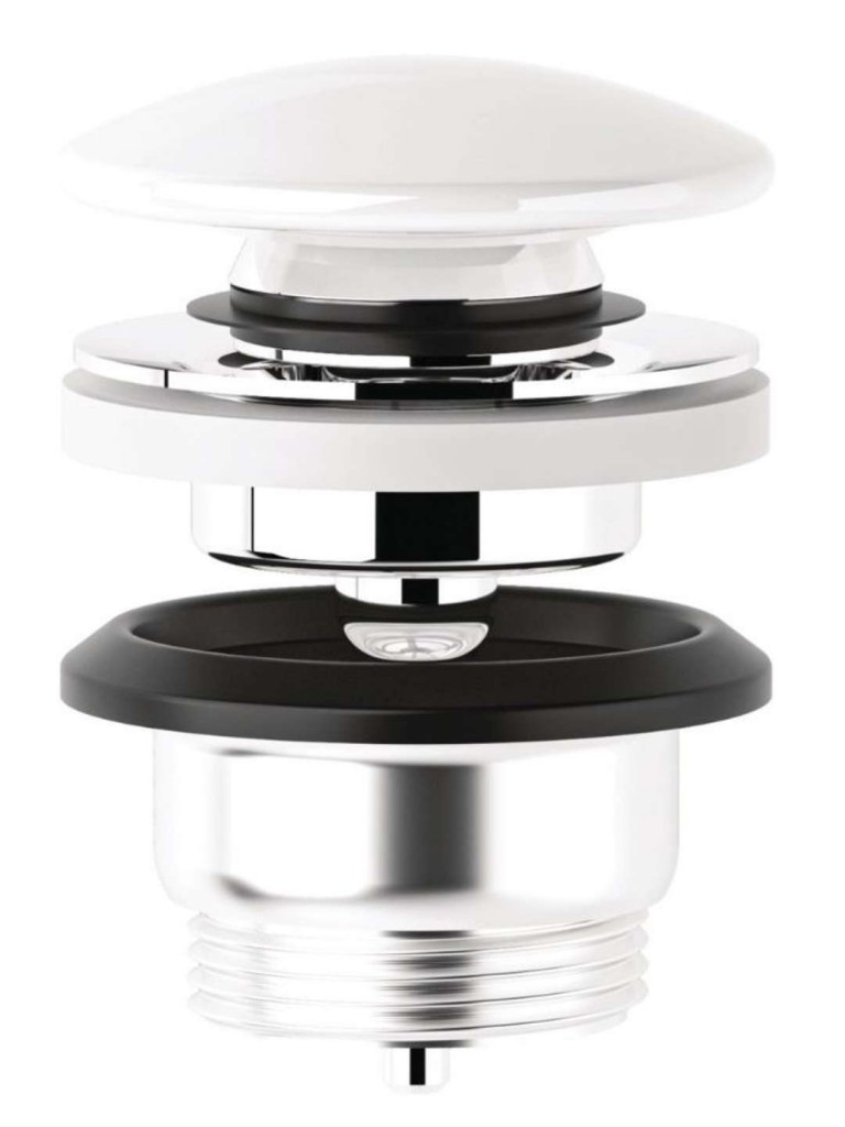 Umyvadlová výpusť barva lesklá bílá click-clack mechanismus průměr 63 mm keramická krytka Ilustrační foto