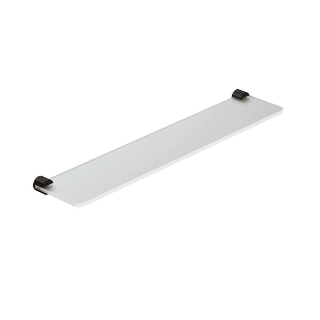Skleněná polička Vela R barva broušený Gunmetal materiál kov/sklo rozměry 600 x 120 mm tloušťka skla 8 mm nástěnná instalace instalace vrtáním včetně upevňovací sady