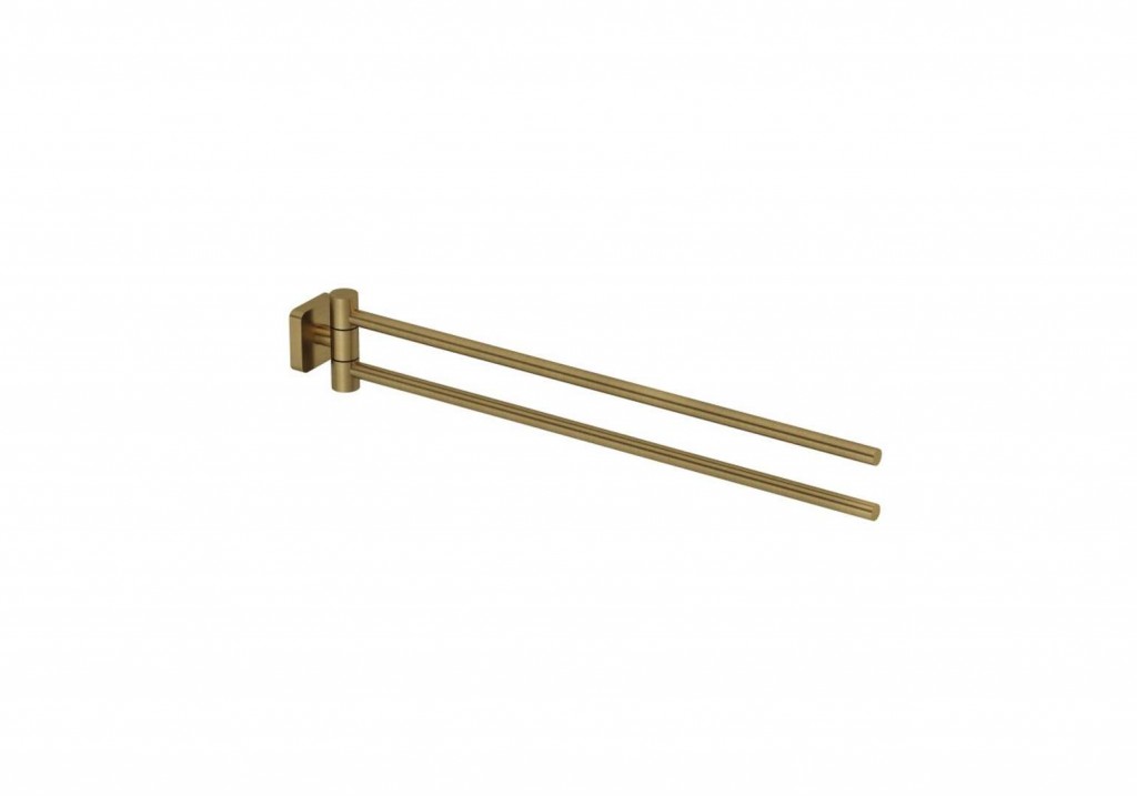 Dvojitý držák ručníků Vela S barva kartáčované zlato materiál kov délka 441 mm dvě otočná ramena nástěnná instalace instalace vrtáním včetně upevňovací sady