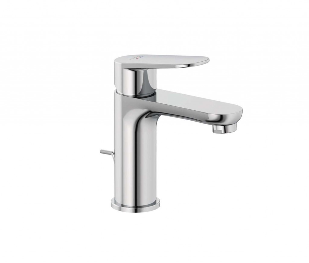 Páková umyvadlová baterie barva chrom výška 165 mm délka výtoku 110 mm komfortní zóna 95 mm stojánková montáž pákové ovládání keramická kartuše s omezením horké vody perlátor M 18,5 PCA připojení G 3/8'' s výpustí