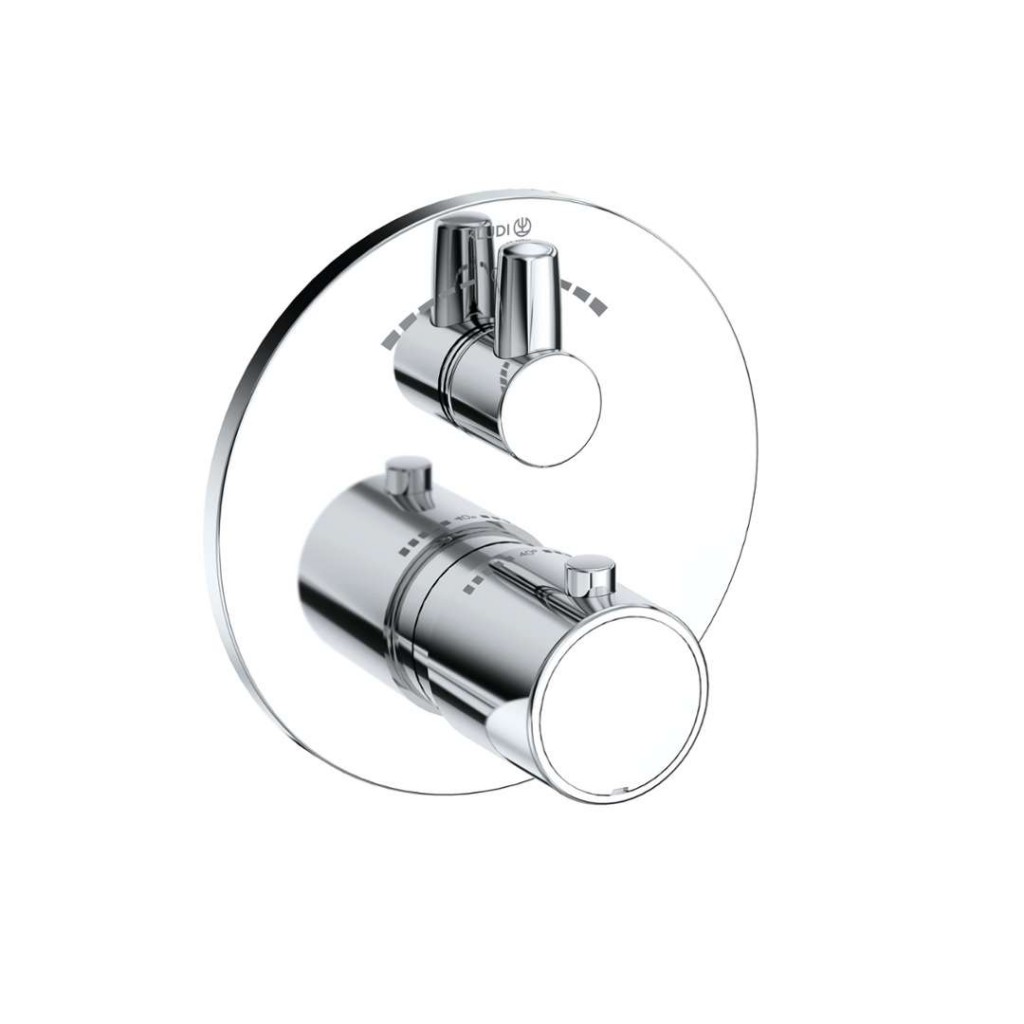Termostatická podomítková baterie Zenta SL barva chrom podomítková montáž průměr krycí desky 150 mm kohoutkové ovládání pro 2 spotřebiče keramický uzavírací ventil bezpečnostní zarážka - ochrana proti opaření s integrovanou zpětnou klapkou průtok vana 28 l/min při 3 barech průtok sprcha 24 l/min při 3 barech pro těleso 88022 Montážní těleso není součástí dodávky.