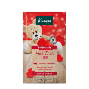 Nechte promluvit své srdce. Koupelová sůl Kneipp® Miluji tě s přírodním výtažkem z malin a pečujícím brusinkovým olejem dá najevo vaši lásku. Sladká ovocná vůně navodí smyslnou atmosféru. Termální solanka pečuje o pokožku a léčí kožní problémy. Těží se v solném dolu Luisenhall, jediném který se v Evropě dochoval. Tvoří ji přírodní stopové prvky a neobsahuje žádné chemické přísady ani látky, které by mohly ohrožovat životní prostředí.