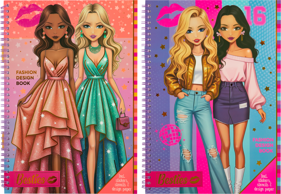 Staňte se módním návrhářem! Tento kreativní sešit je perfektní pro rozvíjení fantazie a stylu. Děti si v něm mohou navrhovat vlastní módní kolekce, kombinovat oblečení, doplňky a barvy. Sešit je skvělým nástrojem pro vytváření designových skic a trénování módního citu.Designové stránky: Obsahuje desítky stránek s předtištěnými figurami (modelkami) nebo siluetami oblečení připravenými k navrhování. Šablony (Stencils): Desky se šablonami pro snadné obkreslování různých částí oblečení (sukně, topy, kalhoty, rukávy).Samolepky (Stickers): Archy samolepek, které slouží k dekoraci a dodání finálních detailů (doplňky, boty, vzory, šperky).