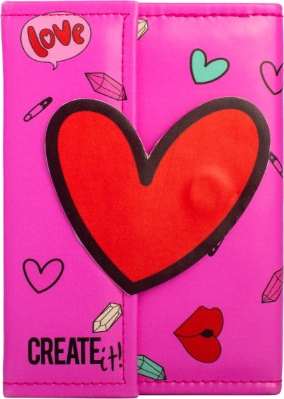 Kniha s líčením na magnet – hniha po rozevření obsahuje aplikátor na oční stíny, štetec, šteček, 4× make up, 9 barev očních stínů a 8 barev rtěnek + zrcátko.