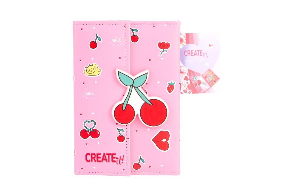 Kniha s líčením na magnet – hniha po rozevření obsahuje aplikátor na oční stíny, štetec, šteček, 4× make up, 9 barev očních stínů a 8 barev rtěnek + zrcátko.