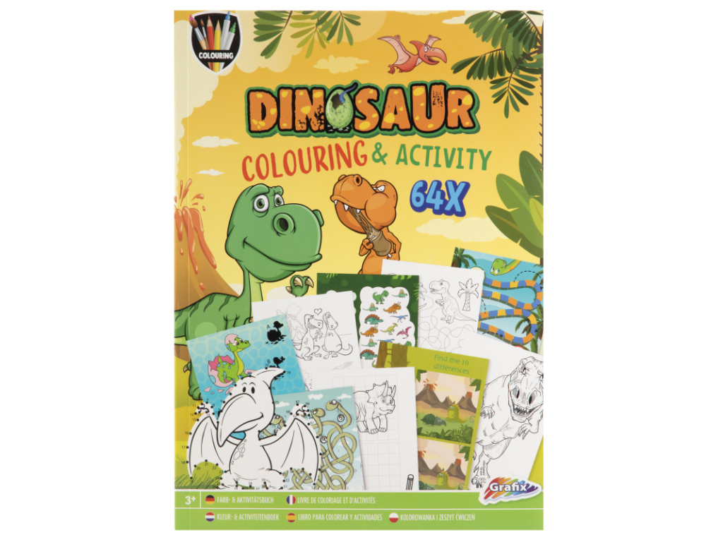 S touto knihou plnou omalovánek a aktivit s dinosaury budete vybarvovat, kreslit, lepit samolepky, dělat úkoly. Kniha obsahuje 64 stran. Rozměr: A4. Vhodné pro děti od 3 let. Zakupte produkt Kniha s omalovánkami a aktivitami Dino A4, 64 listů z kategorie Hry, hračky, párty, karneval | Dětská zábava | Omalovánky | Ostatní omalovánky od výrobce Grafix za cenu 53 Kč.