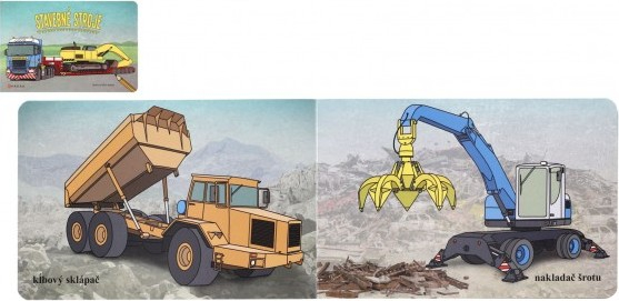 Viete, aké existujú stavebné stroje? Vydajte sa s naším leporelom po stavenisku a spoznajte, ako vyzerá pásový bager, žeriav, buldozér, zarovnávač a množstvo ďalších stavebných strojov. Rozmer: 24 x 16 cm Vhodné od 2 rokov