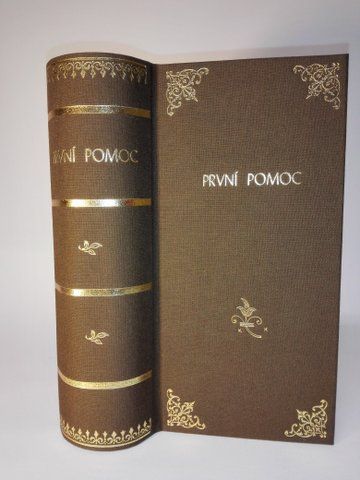 Kniha První pomoc Úschovna alkoholu na miniaturku. Nejsou součástí. Barva knihy je růžová.