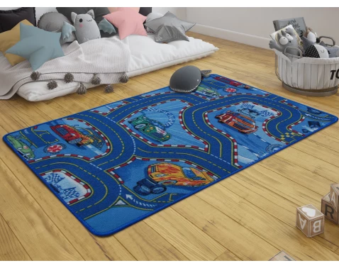 Dětský koberec 100x150 cm s designem města pro hraní s autíčky. Ideální do dětského pokoje, zaručuje hodiny zábavy a objevování.