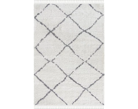Nadýchaný koberec s třásněmi s marockým vzorem a vysokým vlasem (30 mm) v rozměru 80×150 cm dodá interiéru styl, pohodlí a odolnost díky frize vláknům.