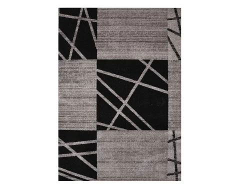 Moderní koberec o rozměrech 80x150 cm s abstraktním geometrickým vzorem čar a čtverců v kombinaci šedé a černé barvy přinese styl a originalitu do každého interiéru. Hodí se do obýváku, ložnice nebo dětského pokoje.
