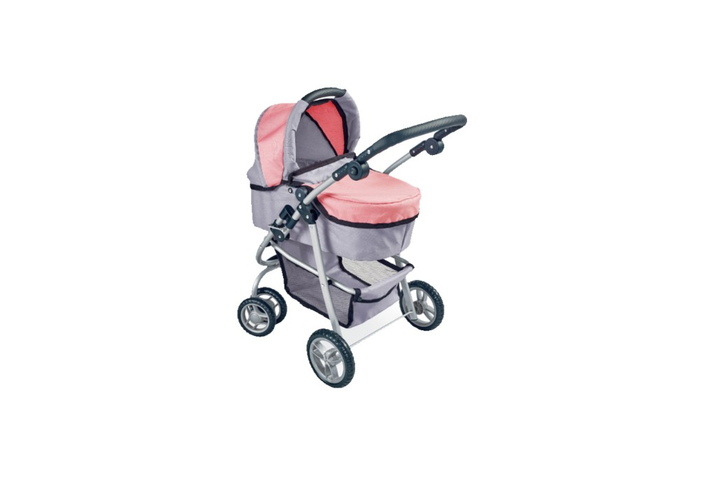 Kovový kočárek pro panenky v moderní růžovo-šedé kombinaci. Možnost sportovního nebo hlubokého kočárku. Korbu lze využít jako sedačku do auta. Nastavitelná korba, výška madla, které lze zároveň přehodit. Praktický košík a odnímatelné popruhy na panenku. Otočná přední kolečka. Kočárek je balen v krásné dárkové krabici.