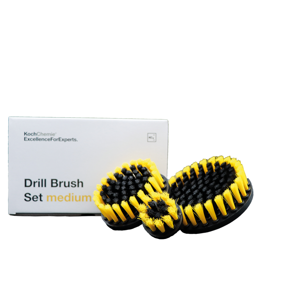 Popis přípravku: Sada Drill Brush se skládá ze tří částí a je k dostání ve dvou různých stupních tvrdosti. Sady Drill Brush lze snadno rozlišit podle barevného označení. Žlutá sada se střední tvrdostí štětin je ideální na textilie a necitlivé plastové díly v interiéru vozidla. Červená sada je vhodná pro hrubé práce v nákladovém prostoru nebo interiéru vozidla. Použitím se všemi běžnými aku šroubováky lze nečistoty odstranit rychle a efektivně. Sadu lze optimálně uložit do praktického obalu v designu KCX. Oblasti použití: Střední (střední tvrdost štětin/žlutá): Čalounění, podlahy, koberečky (vhodné i na velur),dveřní prahy, zavazadlový prostor, necitlivé plastové díly v interiéru vozidla Tvrdá (silná tvrdost štětin/červená): Gumové koberečky, pedály (plast bez povrchové úpravy), nákladový prostor Doporučené použití:Použití s malým tlakem. Po použití opláchněte a odstraňte nečistoty. Poté nechte uschnout. Poznámka: Pokud efekt zmizí, lze jej obnovit opětovným nanesením výrobku, pokud není tkanina silně znečištěná. Balení obsahuje 3 kusy.