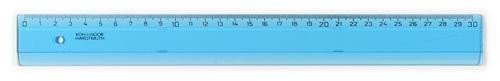 Pravítko 30 cm vyrobené z modrého průhledného polystyrenu. Stupnice je naražena technologií horké ražby. Přesnost stupnice 0,2% délky. Je určeno pro školu i kancelář. Zabaleno je do potištěného polypropylenového sáčku s eurozávěsem.