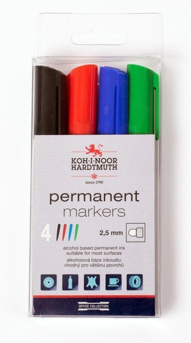 Permanentní značkovače plněné inkousty na alkoholové bázi, odstín červený, modrý, zelený, černý. Stopa písma je odolná otěru a působení vody. Jsou určeny k popisování neporézních materiálů (kov, sklo, porcelán, kůže , dřevo, beton, kámen, lepenky, karton). V případě potřeby je možné popis odstranit lihem. Jsou osazeny klínovými hroty o průměru 5 mm a je možné psát šířkou stopy písma 2,5 mm, délka 600 m. Baleny jsou soupravách po 4 ks v plastových krabičkách..