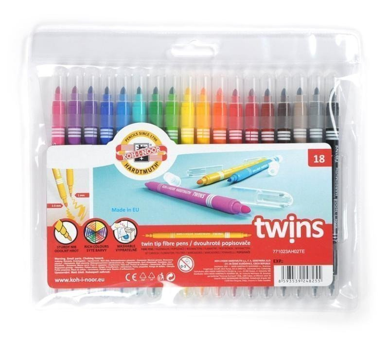 Školní dvojité popisovače se dvěma různými průměry hrotů a bezpečnostními chránítky,které umožňuje dýchání i v případě spolknutí. Jsou plněné pestrými vypratelnými inkousty ve 12 odstínech a vyrobeny z materiálů zajišťující odolnost proti vyschnutí minimálně 3 roky.Oba hroty jsou odolné proti zatlačení.Umožňují psát a malovat stopou šířky 1 mm, s hrotem průměru 2 mm a 2 – 3 mm s kuželovým hrotem průměru 3,7mm,délka 300 – 600 m podle použitého hrotu.Všechny použité materiály splňují požadavky normy EN – 71.Baleny jsou do souprav po 6 a 12 ks v PP pouzdrech. Vyrobeno v EU.