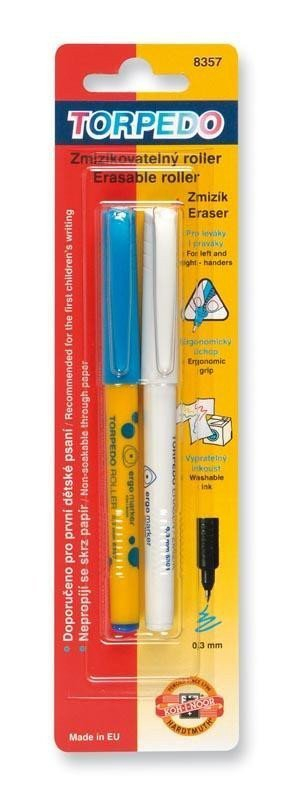 Roller s propracovaným trojhranným ergonomickým úchopem a bezpečnostním chránítkem ,které umožňuje dýchání i v případě spolknutí.Je plněn modrým zmizíkovatelným inkoustem vypratelným z textilu,který se nepropíjí skrz papír.Píše rovnoměrnou stopou písma šířky 0,3 mm, délka 2000 m.Je určen zejména pro první dětské psaní jako náhrada plnících per.Při psaní nedochází k nežádoucí únavě ruky a je vhodný i pro leváky a dysgrafiky. Všechny použité materiály splňují požadavky normy EN – 71.Vyrobeno v EU.