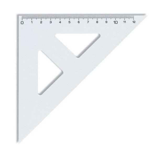 <p>Trojúhelník 45/141 s kolmicí vyrobený z čirého průhledného polystyrenu. Tisk stupnice je odolný proti opotřebení při běžném používání. Přesnost stupnice 0,2% délky. Mimo délkové stupnice je vybaven i ryskou pro konstruování kolmic. Trojúhelník je určený k rýsování a technickému kreslení ve škole i v kanceláři. Zabalen je do polyetylenového sáčku s eurozávěsem.</p>