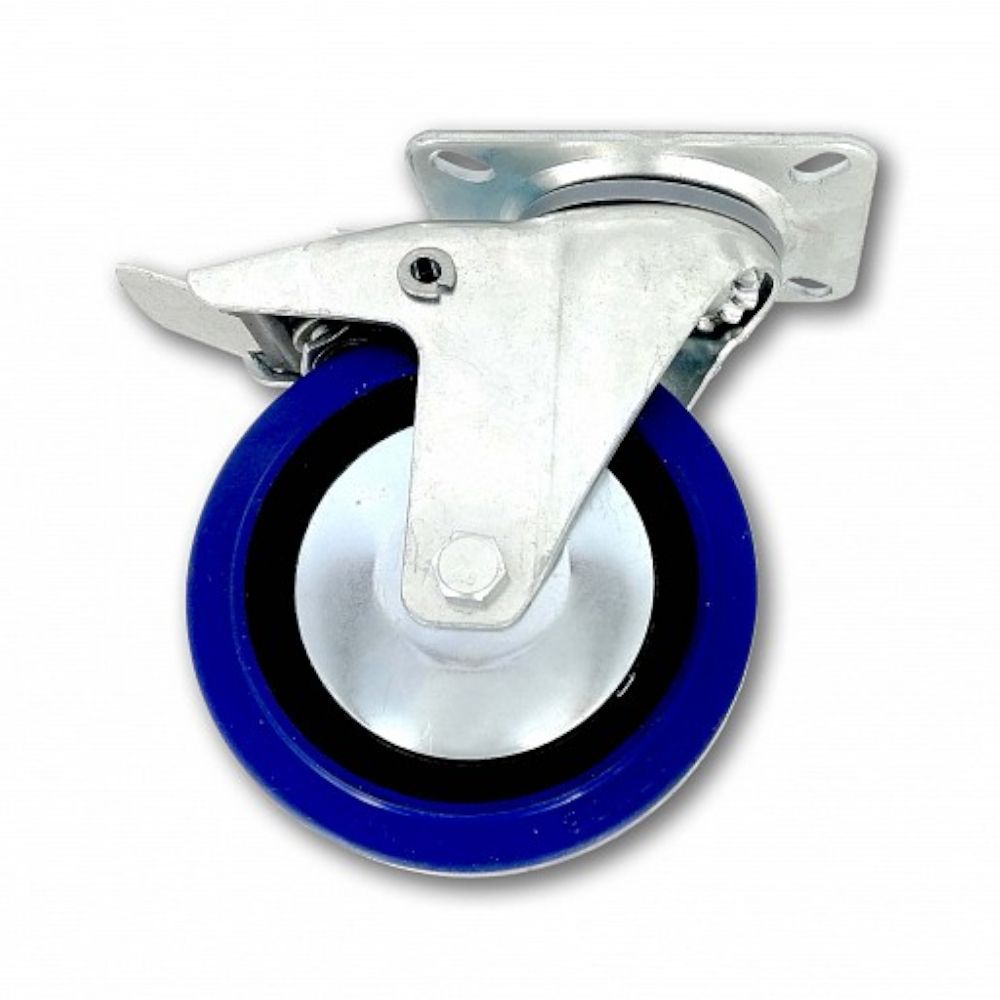 Kolečko pojezdové, 200mm, otočné+brzda, tvrdá pryž-modrá, 300kg