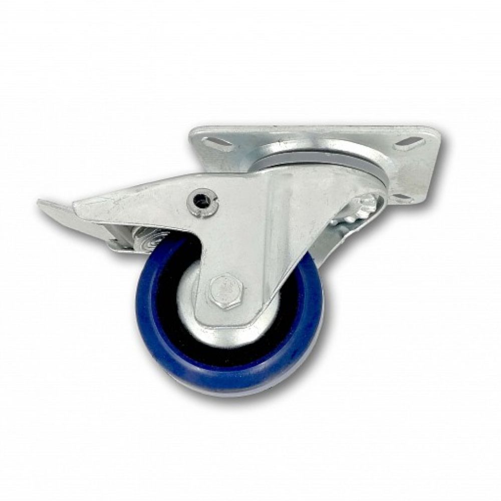 Kolečko pojezdové, 200mm, otočné+brzda, tvrdá pryž-modrá, 300kg