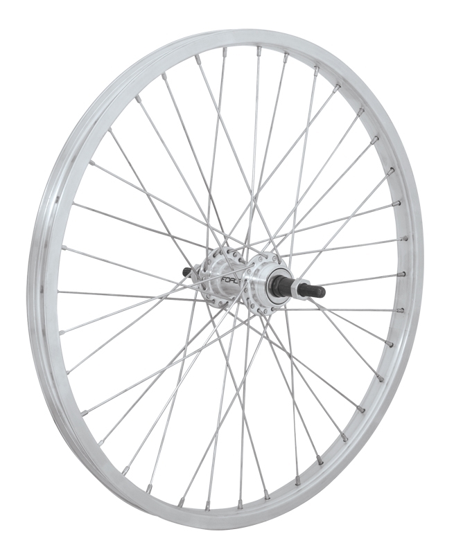 Kolo zadní RMX 219, 406x19, stříbrné, náboj FORCE 20" zapletené kolo zadní REMERX RMX 219 - 406x19 zadní náboj FORCE 80419 - AL s pevnou osou na matice, kuličková ložiska na 5-7 vícekolečko (nelze použít na kazetu), pevná osa 9,5mm 36 děr, pro klasické nebo V-brzdy otvor pro ventilek: 8,5mm výška ráfku: 16mm materiál ráfku: Al hliník, provedení NATURAL (stříbrný vzhled) materiál drátů: pozink, stříbrné maximální váha jezdce: 80kg hmotnost: 900g