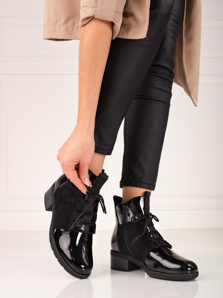 Komfortní kotníčkové boty dámské černé na plochém podpatku 38