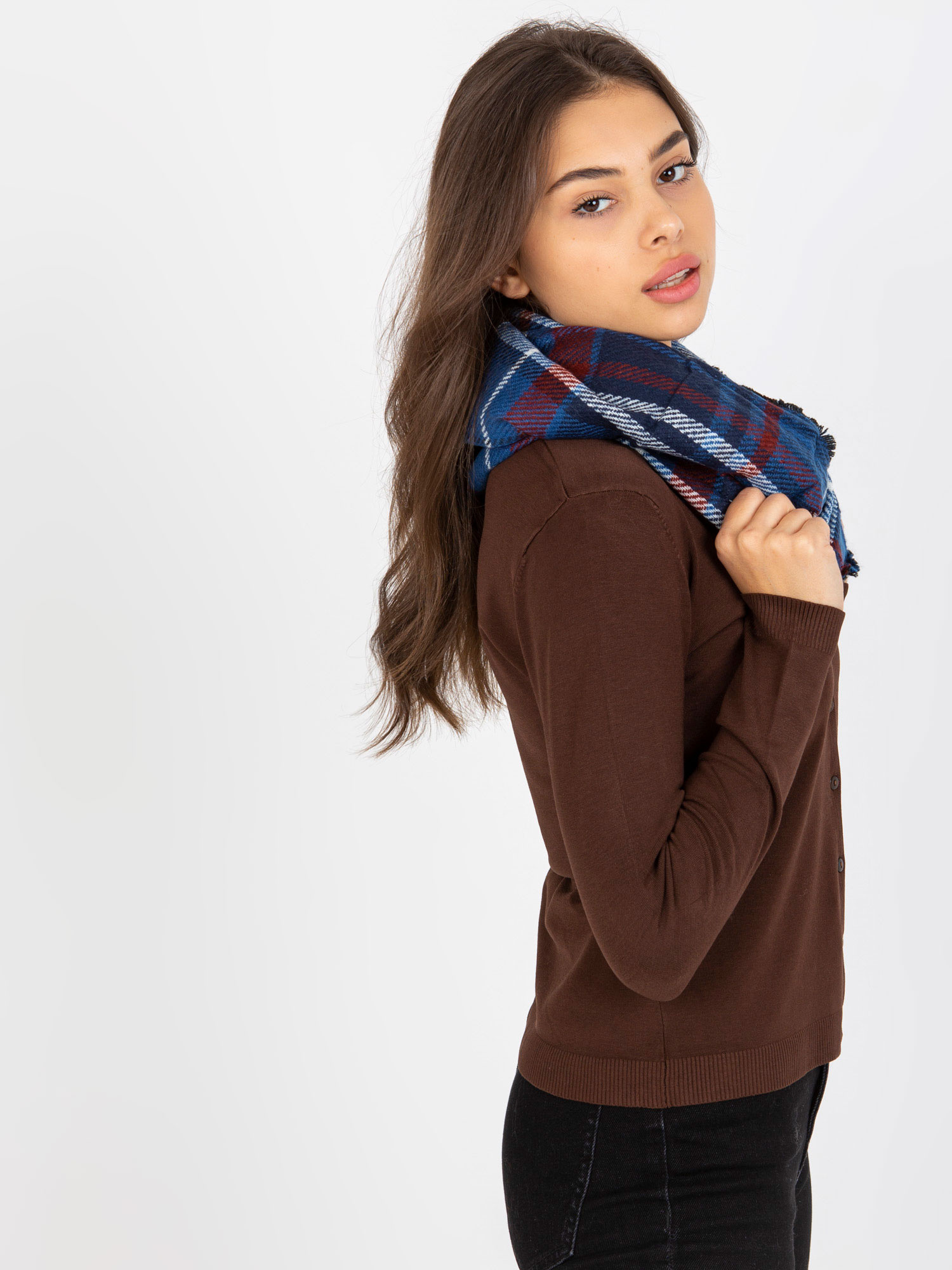 Námořnicky modrý a kaštanový komín s kostkovaným potiskem. Kód produktu: AT-KM-1402.20 dominantní vzor: kostka Rozměry: délka - 85 cm, šířka - 53 cm