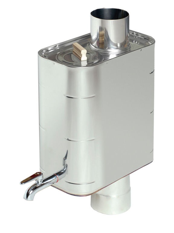 Komínový ohřívač vody se instaluje přímo nad kamna. Voda se v něm zahřeje rychle, jelikož přebírá tepelnou energii od kouřovodu vedoucího přímo z kamen, který slouží i jako stěna bojleru.