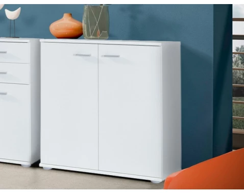 Komoda dvoudveřová o šířce 71 cm a v barvě bílá. Jednoduchým a zcela univerzálním stylem se hodí do jakékoliv místnosti.