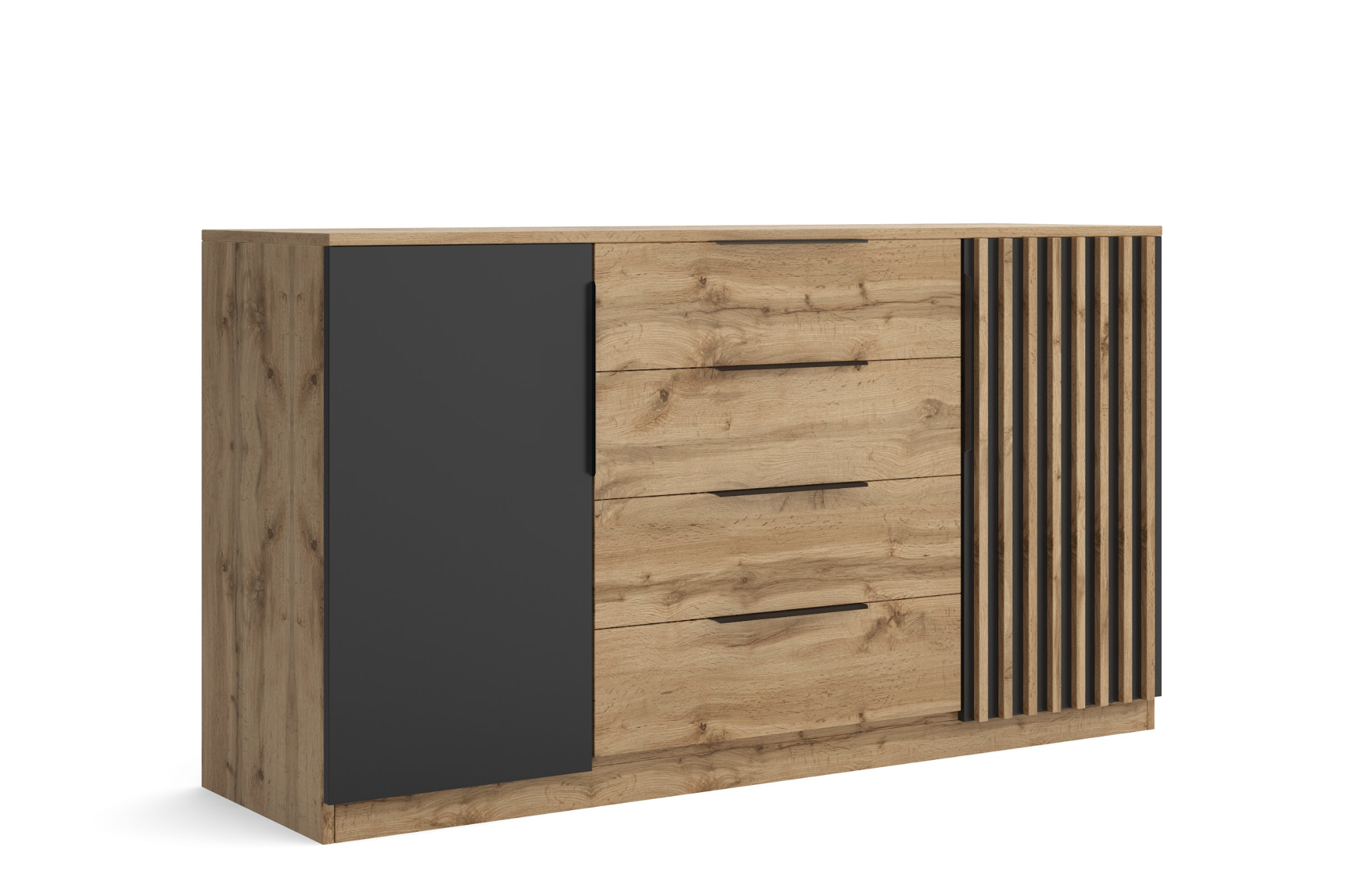 Komoda Kris KR3 • Vlastnosti: Materiál Produkt je vyroben z laminované dřevotřískové desky o síle 16 mm. Hrany desek Hrany jednotlivých desek jsou opatřena PVC dýhou. Vnitřní uspořádání Za krajními dvířky je police. • Barevné provedení Produkty ze sestavy Kris jsou dostupné v kombinaci Dub wotan a černá. Dub wotan Černá • Rozměry 89 cm celková výška 160 cm celková šířka 44 cm celková hloubka 16 mm tloušťka desky • Obývací sestava Kris Zobrazit více... Ložnicová sestava Kris Zobrazit více... • UpozorněníOdstíny prezentované na fotografiích jsou ilustračním materiálem, barvy se mohou lišit od vyobrazení na fotografiích podle nastavení vašeho zobrazovacího zařízení.