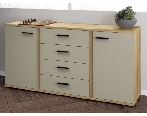 Komoda P27 130 cm Barva korpusu: Lancelot, Lišta: Dub - canyon, Barva dvířek: Dub - canyon