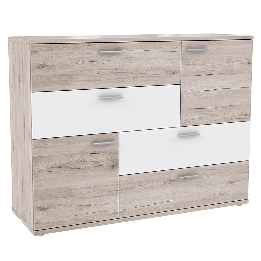 Komoda P14 Barva korpusu: Bílá, Lišta: Lancelot, Barva dvířek: Dub - sonoma