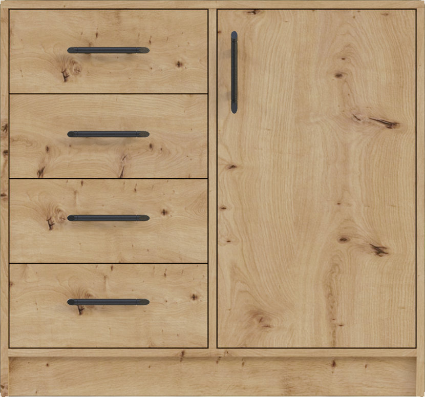 Komoda Smart SRK2 • Vlastnosti: Materiál Produkt je vyroben z laminované dřevotřískové desky o síle 16 mm. Hrany desek Hrany desek jsou opatřeny PVC dýhou. Úchyty Dveře komody otevřete pomocí plastového úchytu. • Barevné provedení Komoda Smart SRK2 je dostupná ve čtyřech barevných variantách: Antracit, Dub artisan, Kašmír nebo kombinace Dub sonoma a bílá. Antracit Dub artisan Kašmír Dub sonoma a bílá • Rozměry 84 cm celková výška 90 cm celková šířka 40 cm celková hloubka 16 mm tloušťka desky • Ložnicová sestava SmartZaujaly vás jednotlivé komponenty Smart a chtěli by jste si pořídit komplet, který bude obsahovat komodu, šatní skříně s nástavci ? U nás naleznete všechny tyto komponenty. Ložnicová sestava Smart • UpozorněníOdstíny prezentované na fotografiích jsou ilustračním materiálem, barvy se mohou lišit od vyobrazení na fotografiích podle nastavení vašeho zobrazovacího zařízení.