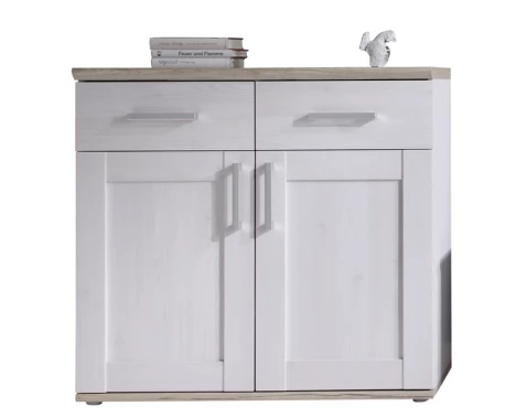 Romantické kouzlo nábytku v venkovském stylu podtrhují reliéfy na předních plochách a kombinace běleného sibiřského modřínu s tóny dubového dřevodekoru.